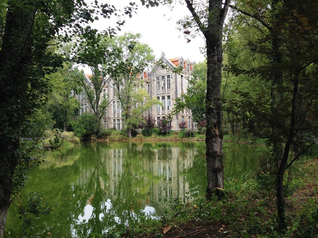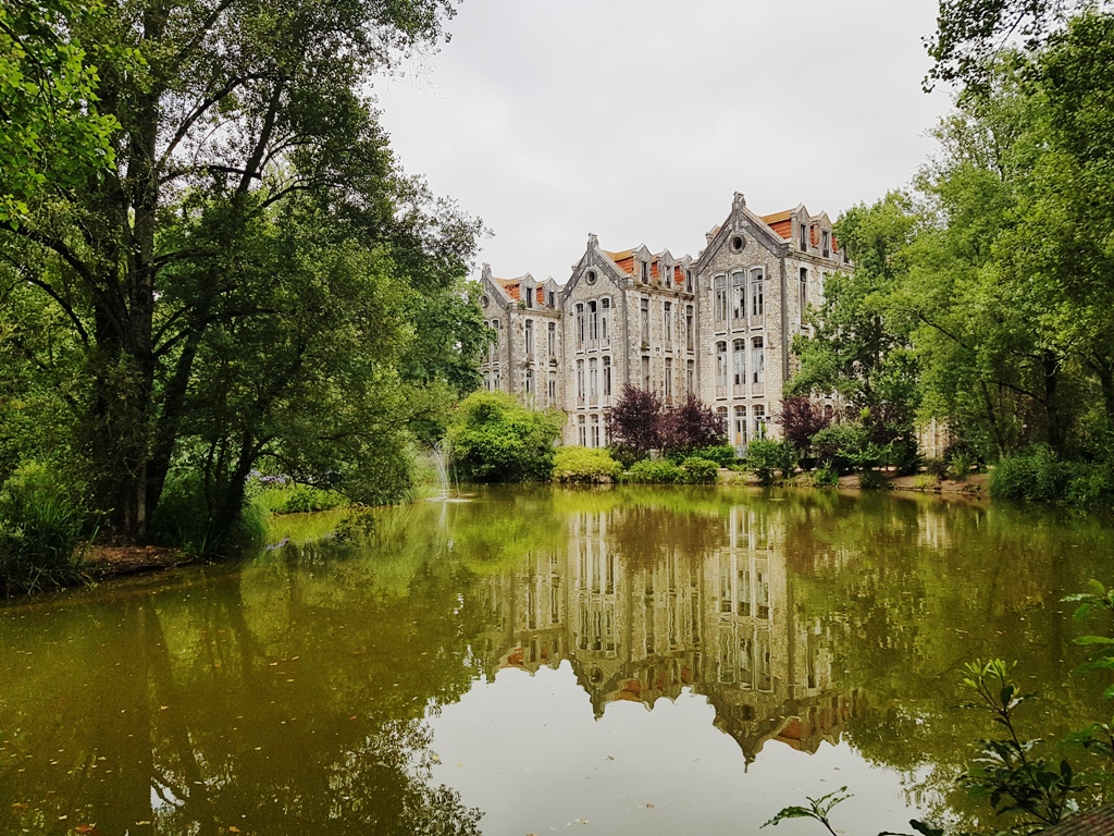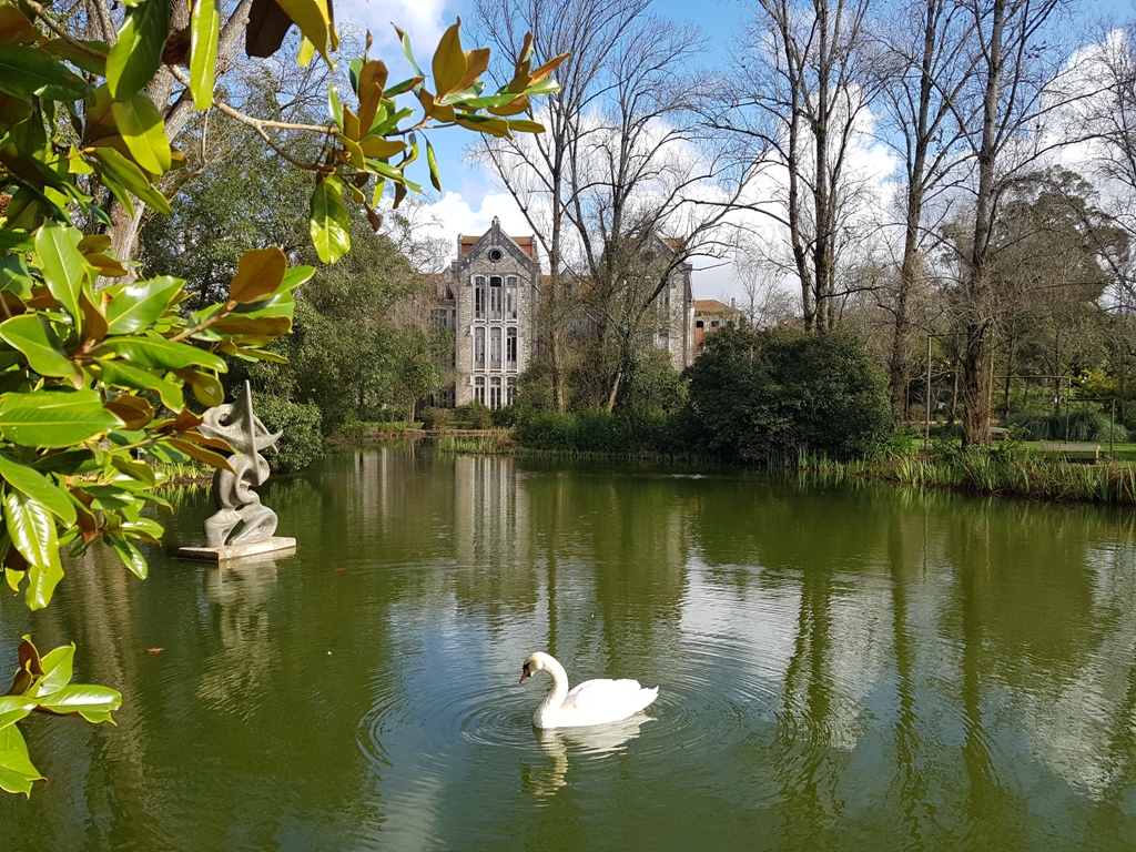 Lago e palácio das termas da Raínha D.a Leonor no parque D. Carlos I em Caldas da Raínha