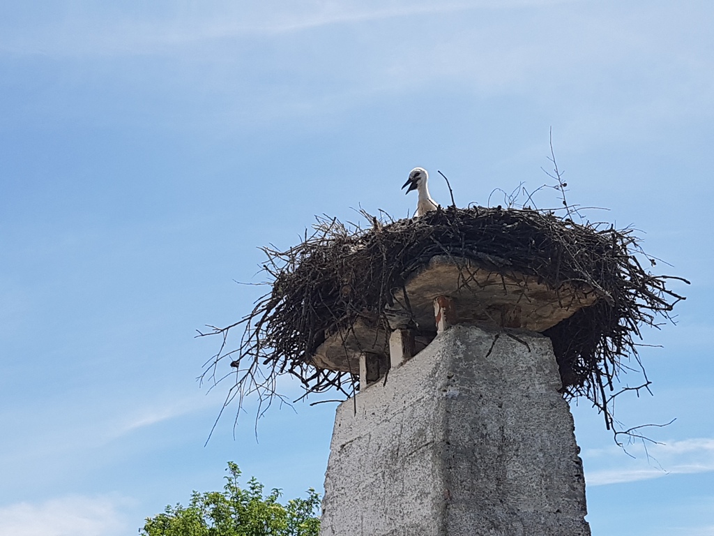 Um pinto de cegonha no antigo apeadeiro dos caminhos de ferro do Paião