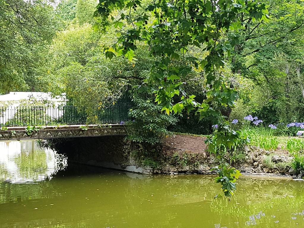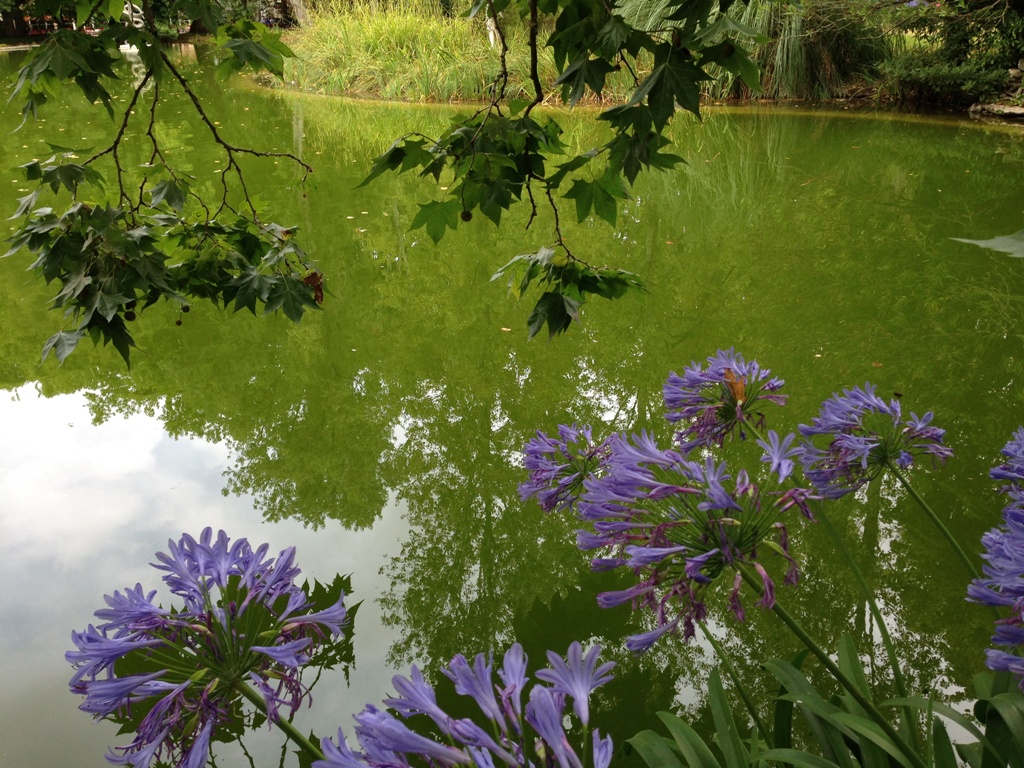 Agapantos sobre o lago do parque D. Carlos I nas Caldas da Raínha